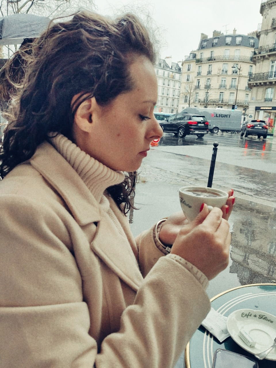 - Tomar um café olhando o movimento parisienne, fiz bastante isso inclusive. Essa Foto é no Cafe de Flore, muito famoso! Nele tomei um chá, o Thé de flore.